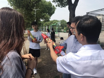 比赛伊始,每队参赛选手都带来了闯过初赛后期精心设计及改良的参赛作品,各个队伍各自进行了试飞、外观微调等赛前准备。比赛进入第一个环节,每支参赛选手派代表向评委老师展示作品,在演说介绍中将各自作品的设计理念及创意想法充分展现出来,例如,八号参赛作品中,他们在火箭的机身外观设计中融入了“六一儿童节”的节日元素,富有创意性,得到了评委老师的好评,在火箭机身功能的设计上实行了集体可拆卸的实用性功能,更是让人眼前一亮;再如十号参赛队伍在火箭箭头上装入了特定的配重物质,有效的增加了火箭射程……比赛如火如荼地进行,随后进入第二个最为关键的环节——火箭射程的评比,每支参赛队伍用同一的火箭发射器发射火箭,经过了初赛的角逐,决赛中选手创下的比赛结果不相上下,各个参赛队伍实力相当。评委老师就火箭射程、轨道偏离度以及火箭外观设计等方面进行逐项评分,最终一号参赛队伍凭借在各项评分标准中均获得较高成绩,获得了本次比赛的一等奖。