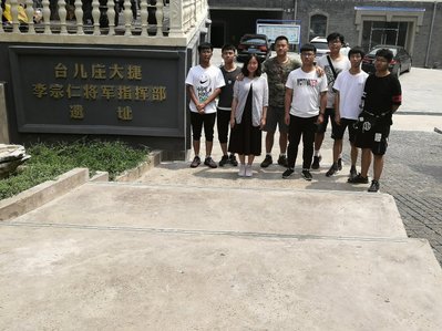 随后,同学们去往了台儿庄大捷李宗仁将军指挥部遗址。台儿庄战役大捷是中国军队在战场上迎击日军取得胜利的第一次大捷,日本宣布无条件投降,便是在这遗址里的小楼里举行的。从前,这里是军事重地,外人难以接近。但是,现在的指挥早已没有了神秘面纱。建筑的样式保留着原来的风格,而里面,却是各种各样的现代的办公场所。这让同学们倍感意外。何亮同学对这样的“现代”的遗址有这样的感受:“来到这样之前,我以为这里的遗址和前几天去的总前委旧址一样,是完全保留过去样貌的。到了这里,才发现,这里和我想象的完全不同。这里把过去的地方利用了起来,作为办公的地方,这一点让人感到十分新奇。”