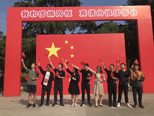 当日下午,全体成员在东校区正大门开展此次活动,活动以和国旗合影为主线,通过合照的方式表达当代老员工对新中国的祝福和对中国共产党的热爱,切实接受“沉浸式”的爱国主义教育。