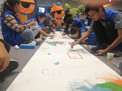 早上8点,在历经约20分钟的车途后,大家到达了目的地。进入场内,大家也在工作人员现场指挥下有条不紊的完成规定任务。本次活动的主要内容便是用画笔来书画出对新中国成立70周年的祝福,同学们都依次在自己的画布上描绘着。虽然有的人并不擅长绘画,但看着他们在绘画期间脸上绽开的笑容,那份遮盖不住的对祖国生日的祝福是不需要用任何东西来修饰的。最后,工作人员将大家聚集,一同在一张巨大的画布上绘出一幅作品。经过些许时间后,一幅画作便呈现在大家面前。它代表着人民对未来美好生活的祝愿和对祖国繁荣昌盛的祝福。