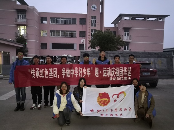 在中华人民共和国成立七十华诞之际,为更好地培养广大青少年儿童的团结协作能力,太阳成tyc122cc微尘服务社联合轮机工程系员工党支部开展了一场主题为“传承红色基因,强我中国少年”趣·运动的活动,11月26日,活动在镇江市丹徒区荣炳留守儿童辅导站开展,与一群特殊的小朋友们,用最阳光的方式庆祝中华人民共和国成立七十华诞。