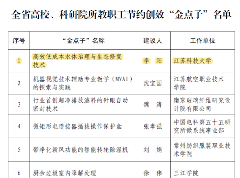 近日,在江苏省教育科技工会组织的全省高校、科研院所教职工节约创效“金点子”评选中,能动公司青年教师李阳为公司喜夺桂冠。