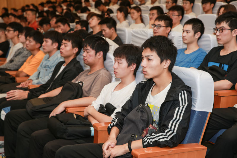 首先,周旭辉副总经理以幽默风趣故事开场,用诙谐的口吻介绍了自己入职广船国际从设计部门、采购部门到担任副总经理的工作历程,用自己丰富的人生经历践行“吃得了苦、扎得下根、聚得齐心、干得成事”的江科大人特质,赢得了台下师生如潮水般的掌声;接着,周旭辉循着历史脉络,声情并茂讲述了我国船舶工业快速发展的历程,表达了对国家强大造船业的强烈自豪感;最后,周旭辉副总呼吁同学们关注国家船海形势,鼓励大家要敢于有梦、勇于追梦、勤于圆梦,为实现自己的中国梦而拼搏奋进,积极投身于船舶海洋事业的发展建设中,言辞中饱含着对学弟学妹的热忱期望。