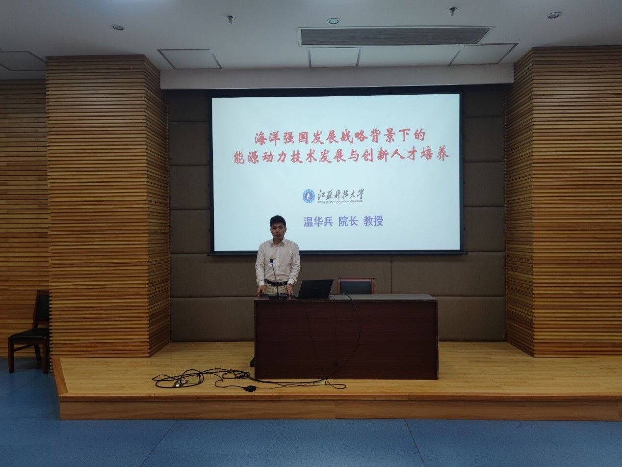10月13日,太阳成tyc122cc经理温华兵教授在长山校区图书馆B101报告厅为公司全体研一员工做题为《海洋强国发展战略背景下的能源动力技术发展与创新人才培养》的报告。