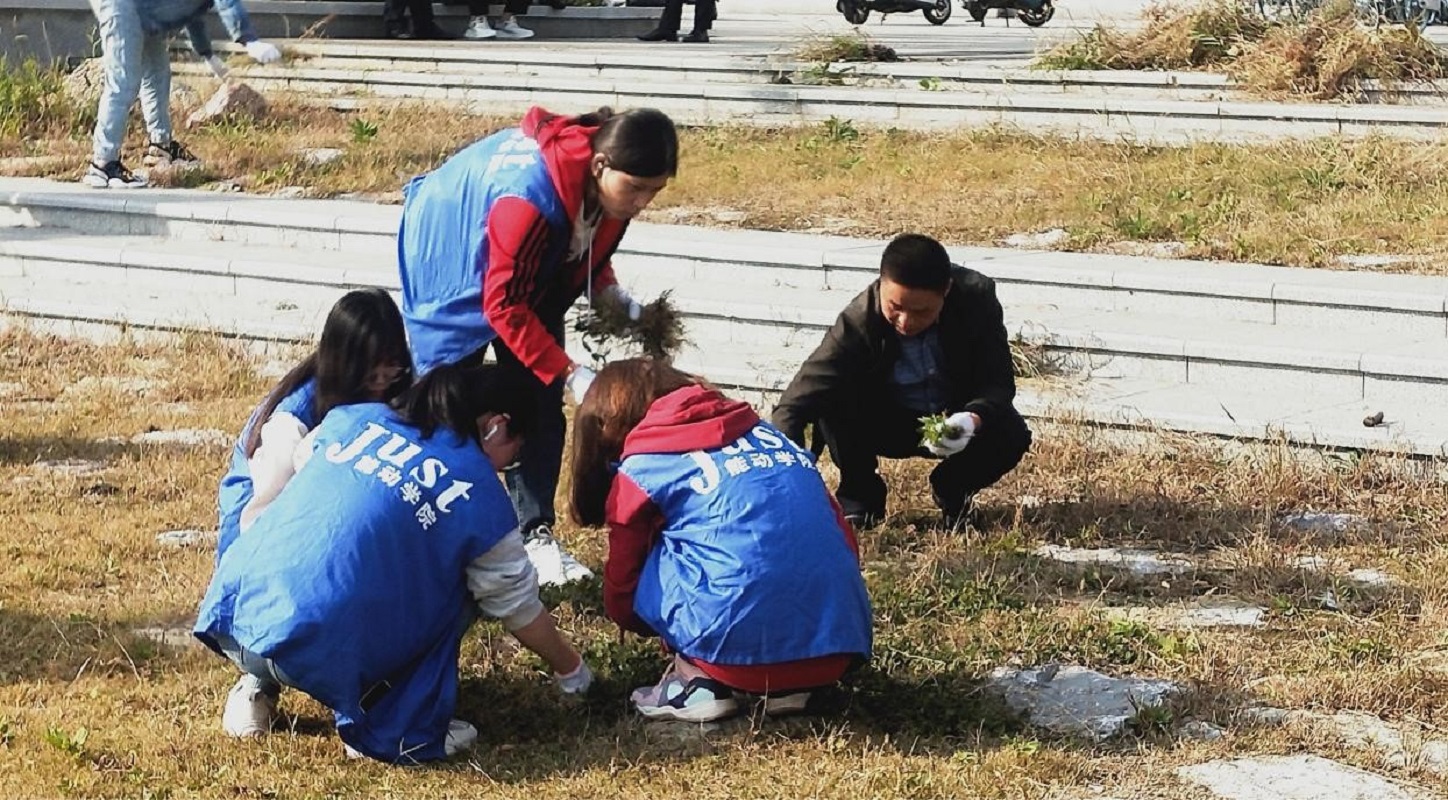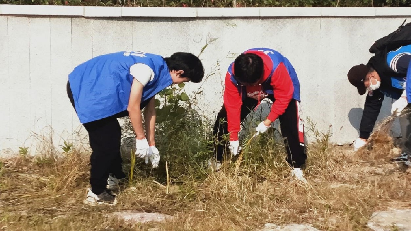 活动初期,劳动指导教师向志愿者们阐明了此次活动的意义,鼓励大家在日常生活中积极行动、齐心协力,共同营造美好的校园环境。随后,劳动指导教师带领志愿者们到达卫生责任区域,为大家分发了劳动手套,告知同学们活动中的注意事项,并亲手示范指导。志愿者们将校园单车摆放整齐,对花坛、草坪中的杂草杂物进行了集中清理。志愿者们一次次弯腰、下蹲,团结协作,细致认真,在校庆来临之际以自身的劳动成果为母校献上最真切的祝福。