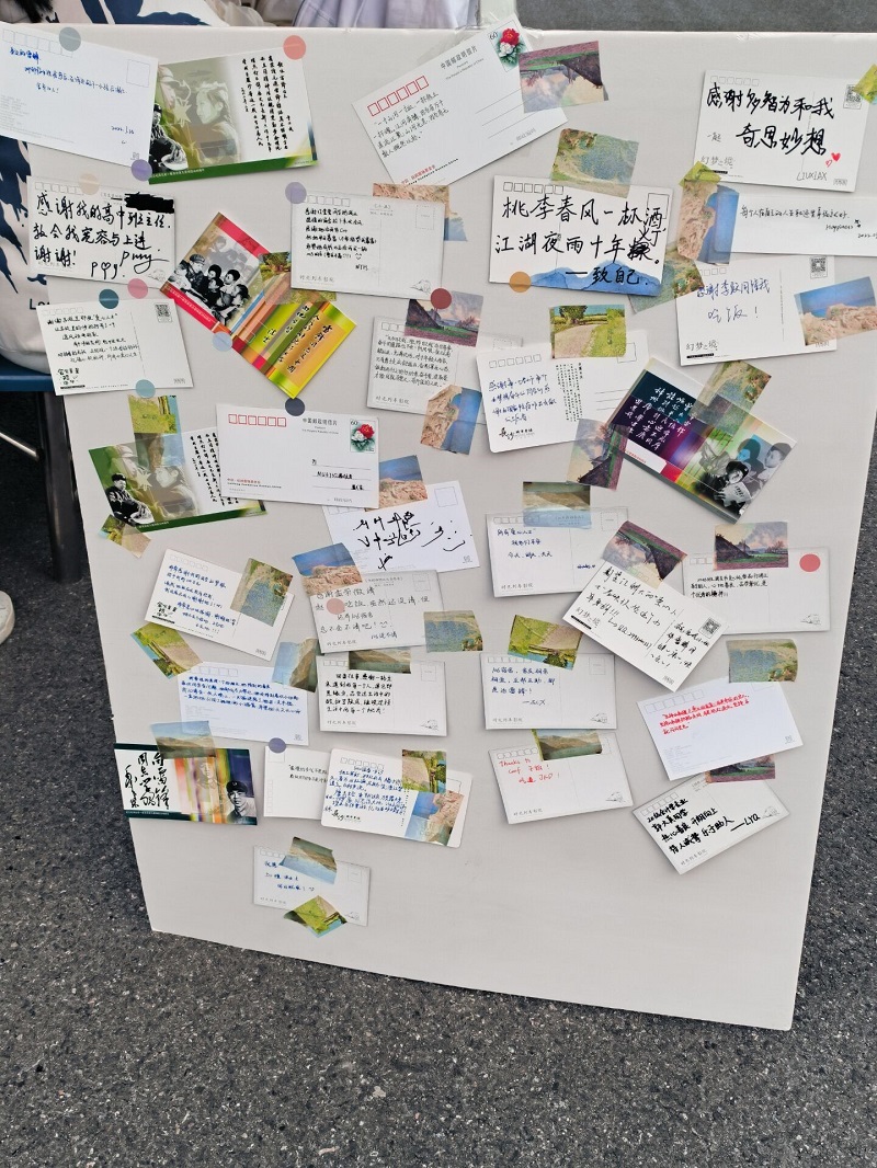 在志愿者的引导下,同学们在明信片上写下身边的好人好事,并贴在展览板上,能让大家更加深刻地体会雷锋的奉献精神,加强校园的精神文明建设。