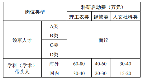 1.学科(学术)带头人及以上人才购房补贴、安家费和科研启动经费标准