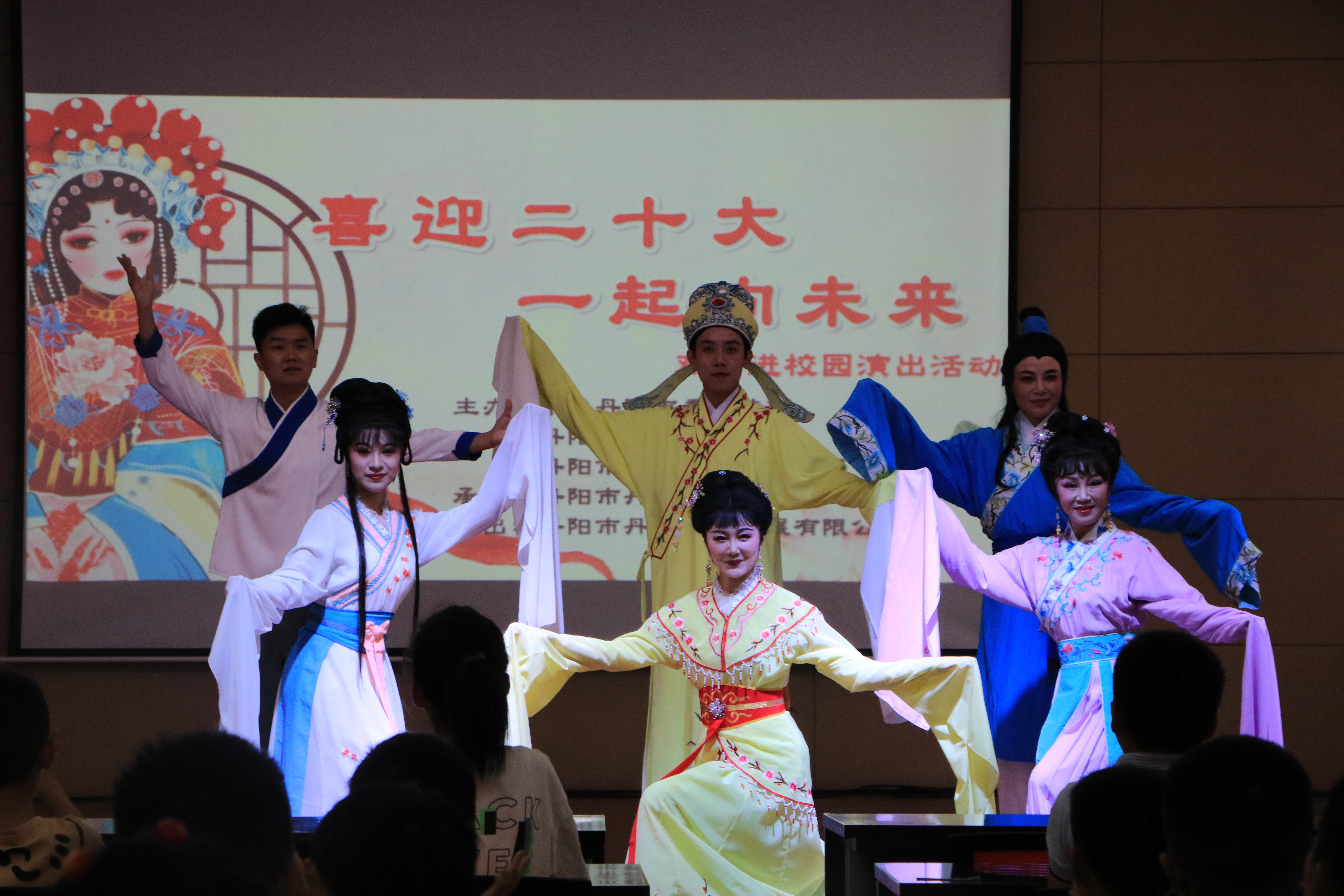 7月2日,幸逢丹剧团举办“喜迎党的二十大,一起向未来”的戏曲进校园演出活动,实践团成员跟随丹剧团来到丹阳市丹凤实验小学,与同学们一同欣赏了丹剧戏曲表演。成员们不仅欣赏了丹剧《江姐》及《天仙配》的精彩片段,还有幸观赏到了京剧《志如钢》以及锡剧。丰富的戏曲题材,精湛的表演技术,使同学们情感与之共鸣,心灵为之震撼,并切身体会到丹剧兼具京剧阳刚与越剧阴柔的艺术特点。
