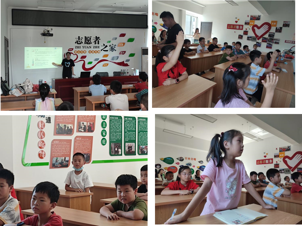 7月1日上午,志愿者们到达指定地点与小朋友们汇合。在进行了简单的自我介绍后,志愿者们向小朋友进行了交通安全和节能减排知识的宣讲,引导小朋友在日常生活的方方面面注意节能减排,例如节约水电、节约燃气等方面,并号召小朋友们从小事做起,从自我做起。经过第一轮的“知识宣讲”,志愿者们还现场发起了节能减排知识竞赛的小比拼,面对志愿者的提问,小朋友们争先举手并轻松说出问题的答案,达到了举一反三的学习效果。