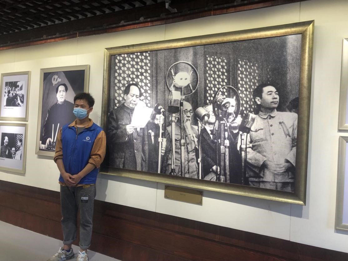 当成员们看到1949年毛泽东主席宣告新中国成立的照片时,自豪兴奋之情溢于言表,但回想起共和国成立时内外受敌的艰难处境、回想起无数仁人志士的年轻生命、回想起国民经济的百废待兴……大家的脸上却更显肃穆和庄严。