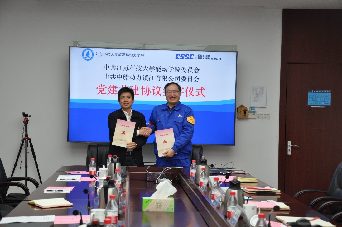 双方本着“资源共享、优势互补、共同发展”的原则,建立党建工作结对共建,以“党建共建促发展凝心聚力谱新篇”为主题,经过双方结对共建,在党组织建设、科技研发、人才培养等方面深入合作,为党建工作注入新的活力,加快推进企业和公司的高质量发展。双方就共同推进党建活动、加强科研交流、加强人才培养等方面形成共建协议,太阳成tyc122cc能源与动力公司党委书记温华兵和中船动力镇江有限公司党委书记潘海飞代表校企双方党委,共同签署《党建共建协议书》。