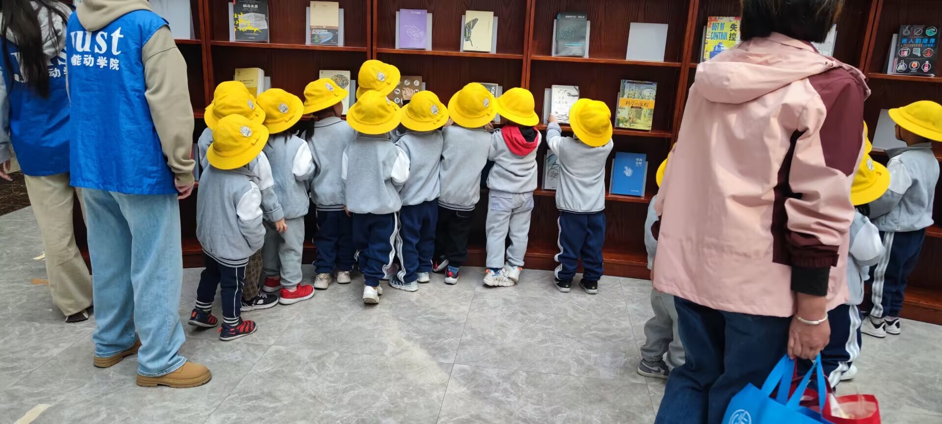 幼儿园的小朋友们分批次到达图书馆前,在老师和志愿者的陪同下依次进入图书馆内参观,了解图书馆的功能分区、图书分类以及图书馆里要遵守的规则等,开始了一场充满书香和童趣的探索之旅。