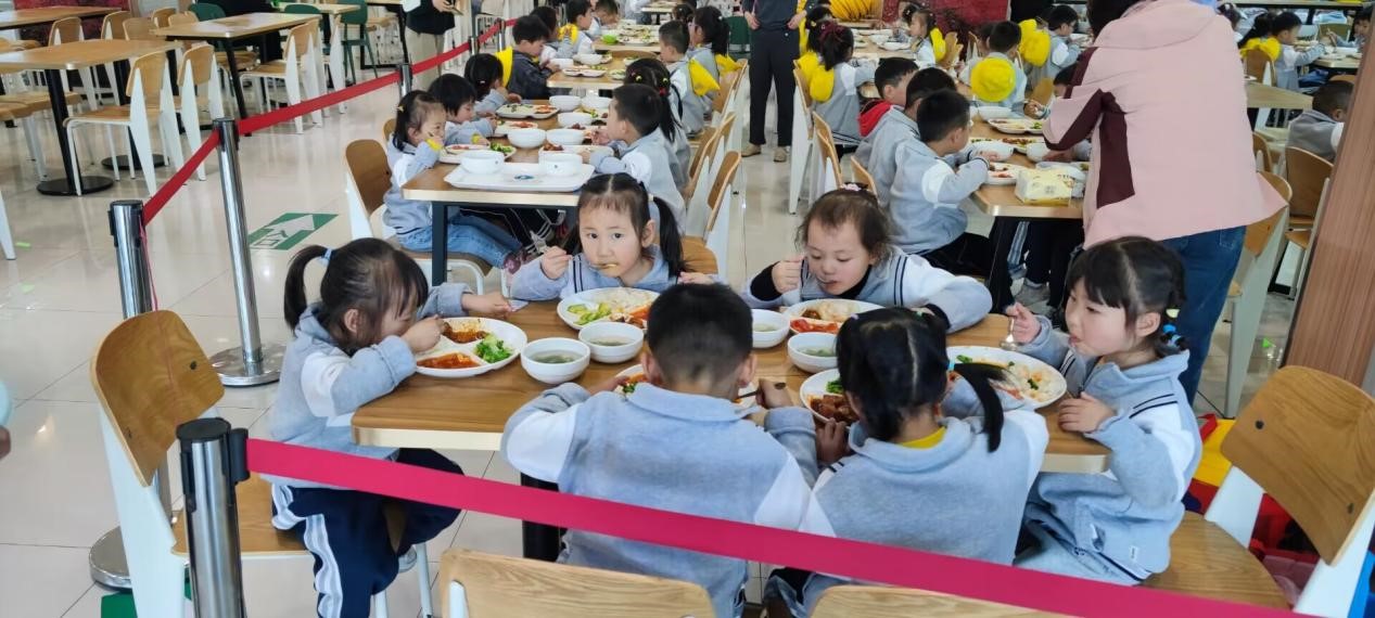 最后一站,志愿者同学带领着小朋友们前往食堂就餐。小朋友们蹦蹦跳跳,手牵手,每个人都听从老师的安排,拿好餐具安开心的就餐,食堂内一片小孩子的欢笑声。