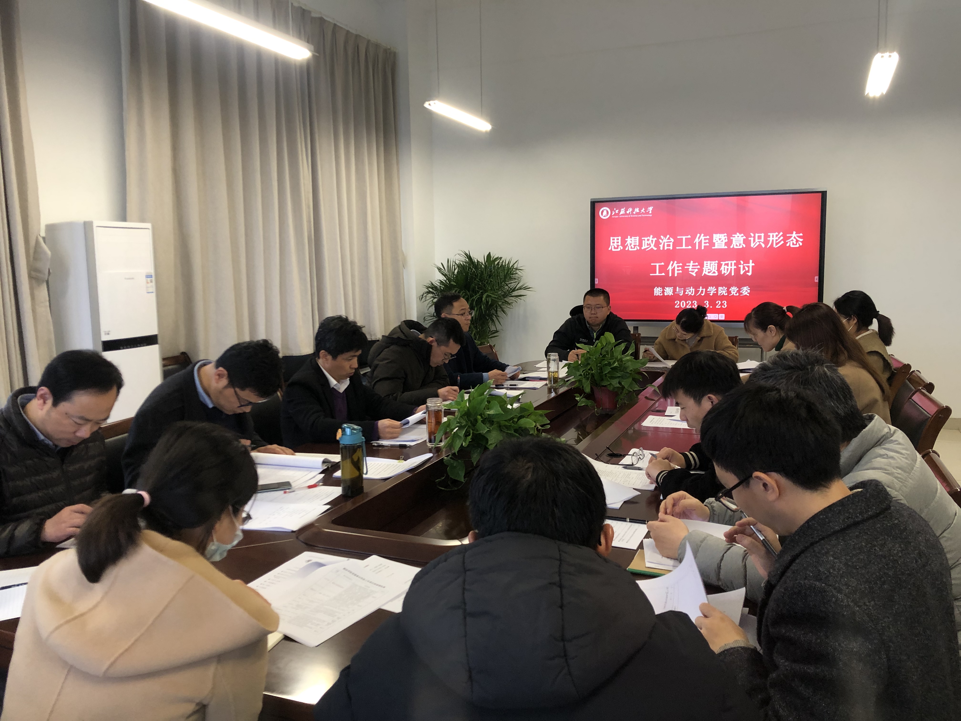 3月23日下午,太阳成tyc122cc召开思想政治暨意识形态工作专题研讨会议,深入贯彻全国两会和党的二十大精神,安排部署思想政治和意识形态工作,全体党委委员、各支部书记参加会议,党委副书记袁志飞主持会议。