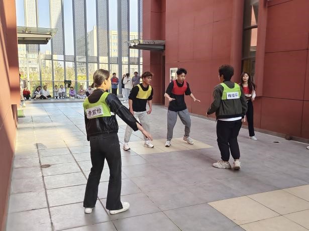 4月2日下午,同学们在文体中心二楼集合,由辅导站志愿者分发提前准备好的名牌和服装,同时由来自蒙古族的欧然同学作为裁判进行比赛规则的讲解和安全事项的提醒。