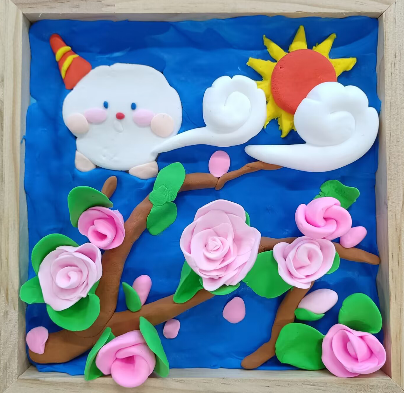 活动分为DIY超轻黏土画手工制作和作品分享两个部分。绘制中,同学们自由分组,相互协助,通过不断地揉、捏、搓、贴将彩色黏土最终变为一幅幅令人赏心悦目的手工画作,体验沉浸式创作带来的舒适快乐。