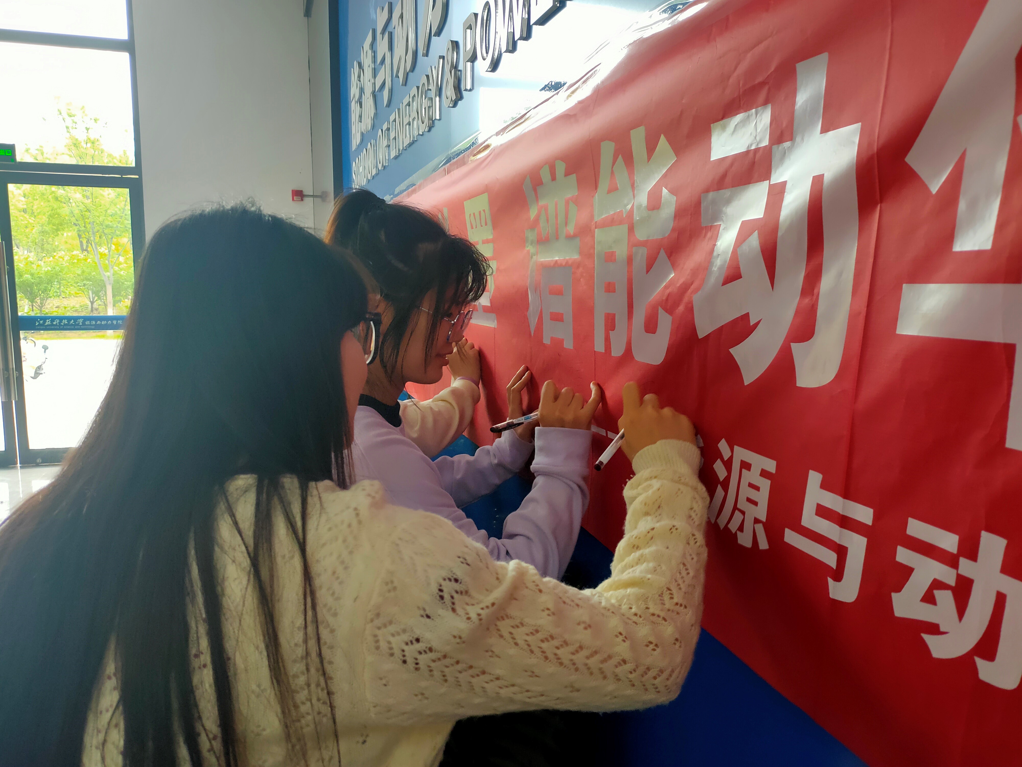 最后,师生代表在印有“执勤奋做笔 蘸创新为墨 谱能动华章”的横幅上签字。