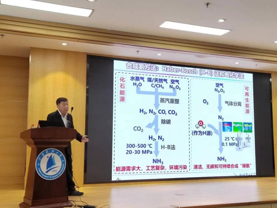 蒋青教授从理论指导实验的角度,设计与优化钼基材料,进而实现高效电化学固氮,详细介绍了其科研团队使用计算机仿真和实验相结合实现对材料新性能预测的研究成果和创新思维方法。现场师生就利用数值仿真手段开展前沿课题研究以及如何开展科研创新工作,与蒋青教授展开热烈讨论与交流。蒋青教授广博的视野、幽默的语言以及独特的分析视角让在场师生对目前合成氨技术有了更深刻、清晰的了解。