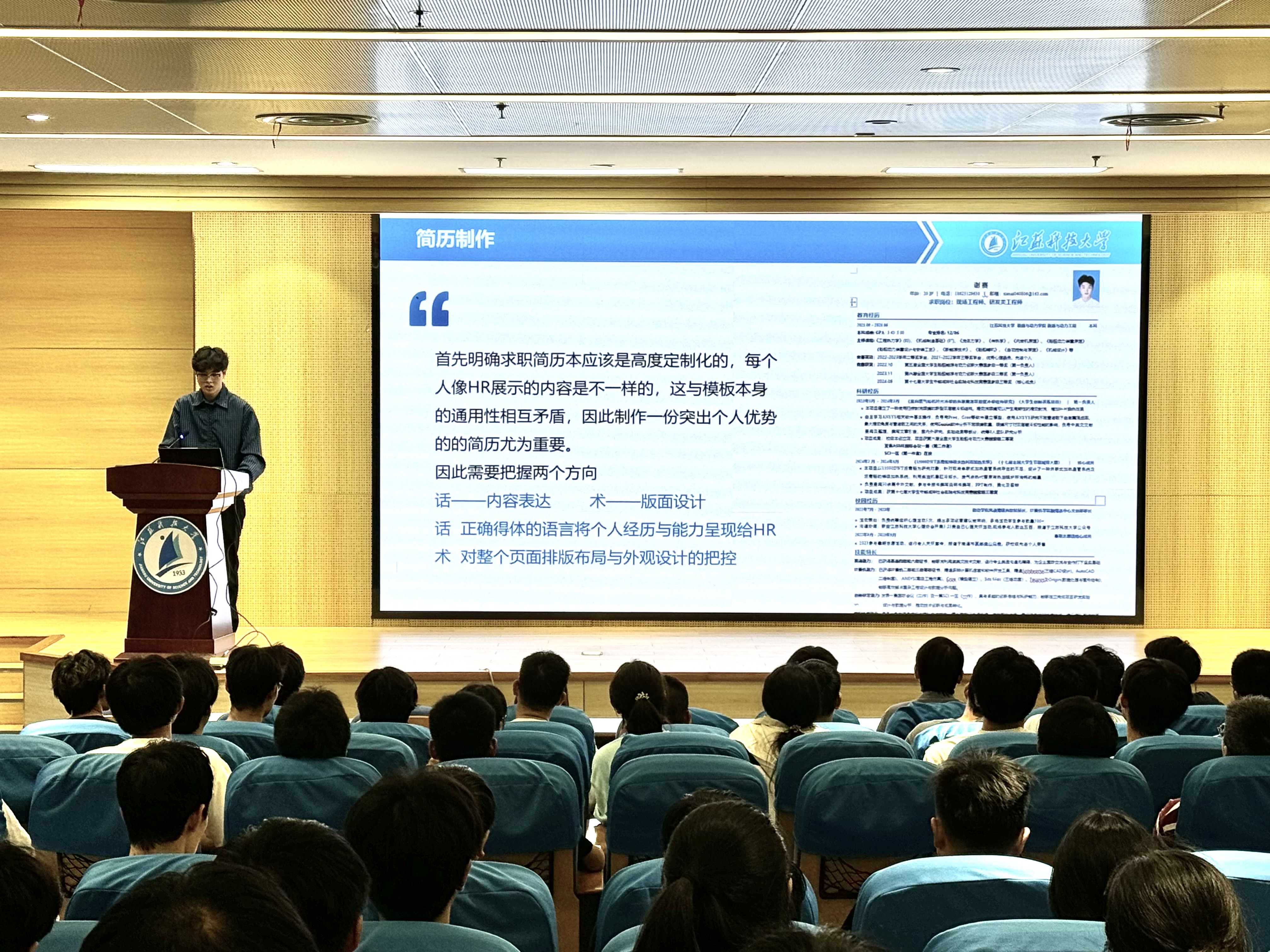 除了就业话题,出国深造也是不少同学关注的焦点。滕文航同学结合自己申请出国的经历带来了她的心得体会。她以“敢于走出去”为主题,详细介绍了申请海外高校的流程、准备语言考试的技巧以及如何选择适合自己的公司和专业等方面。她建议有留学梦想的同学要尽早规划,合理安排时间,同时不要畏惧未知,要有勇气去挑战更广阔的世界。