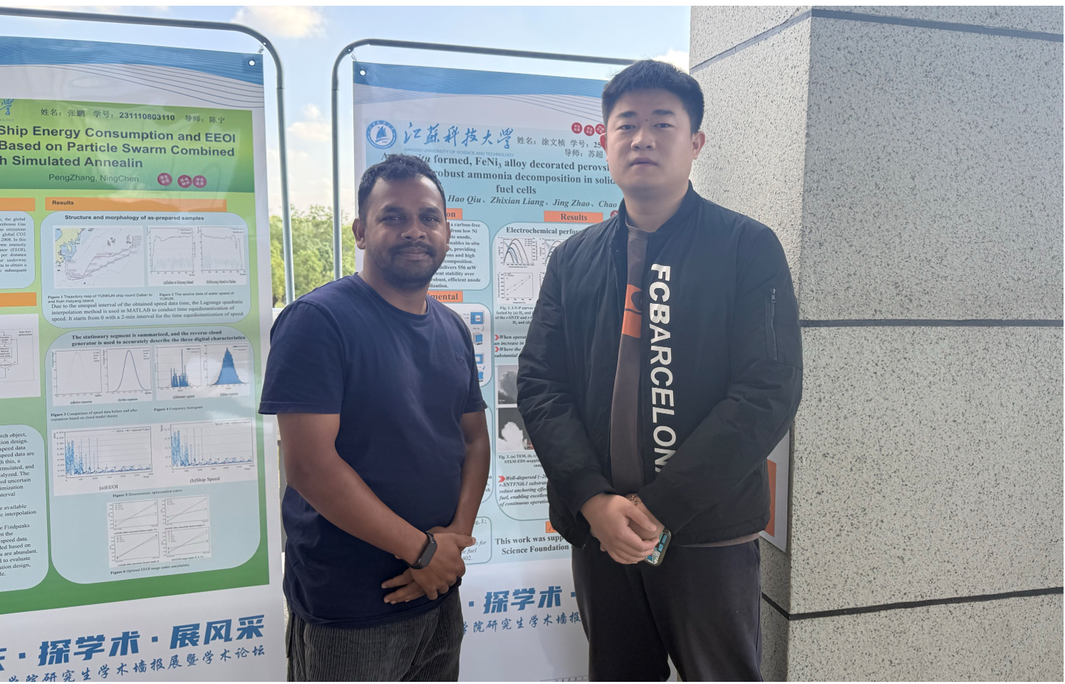 本次活动在全院范围内征集学术墙报,经过初审、复审,最终组织学术墙报展览及现场投票。展览现场,30余份学术墙报以图文并茂的形式,直观展现了研究生的科研创新成果。内容涵盖电池催化剂设计、光热辅助催化产氢技术、船舶能耗智能优化算法等研究方向,集中彰显了公司在能源、动力、海洋工程等学科领域的交叉融合优势。参展研究生通过现场讲解、数据图表解析及模型示意图演示,与观摩师生深入交流研究思路、探讨技术方法。公司副经理王蛟和众多教师现场观看,与同学们深入交流,鼓励大家持续保持科研热情,勇于探索学科前沿,深耕学术创新。
