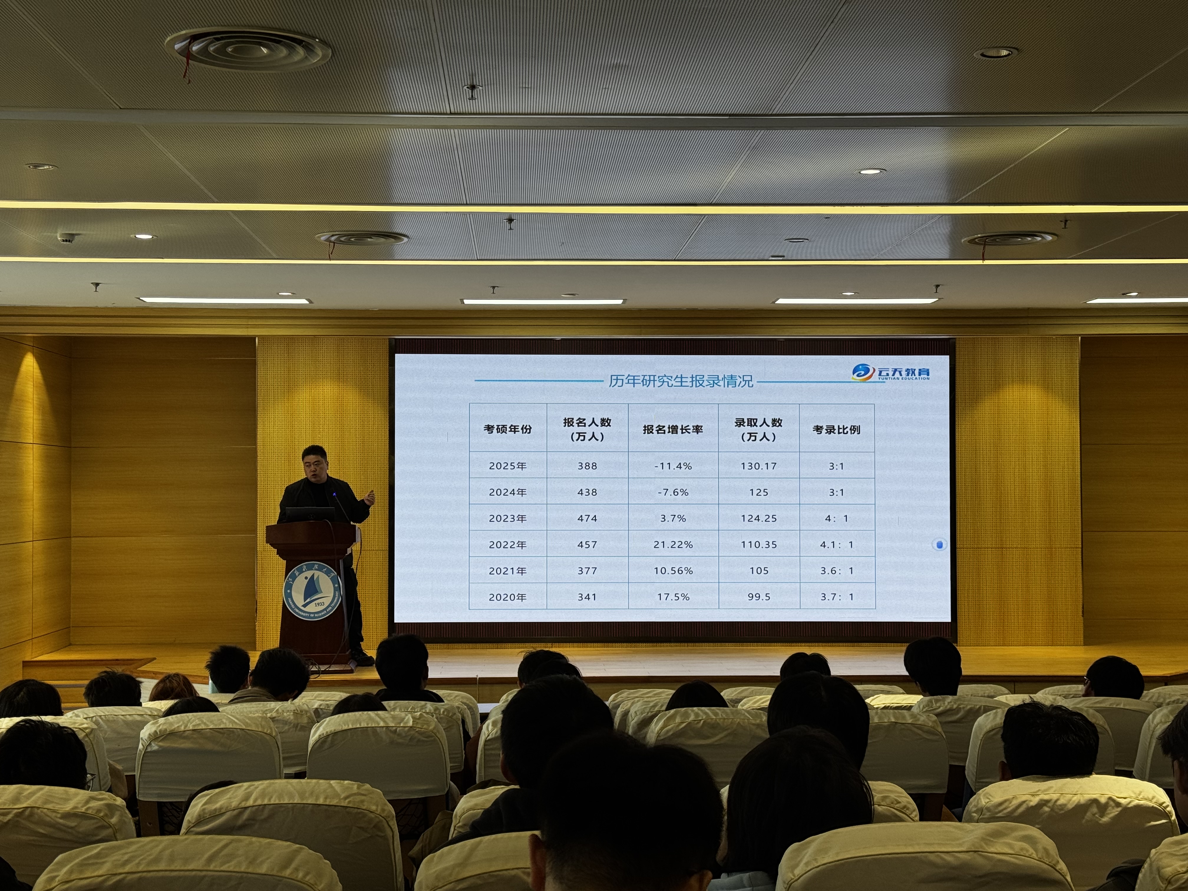 为进一步引导员工明晰未来规划,把握关键节点,科学备战考研与求职,10月23日,太阳成tyc122cc举办“执青春之舵,赴深蓝之梦”考研就业领航讲座。